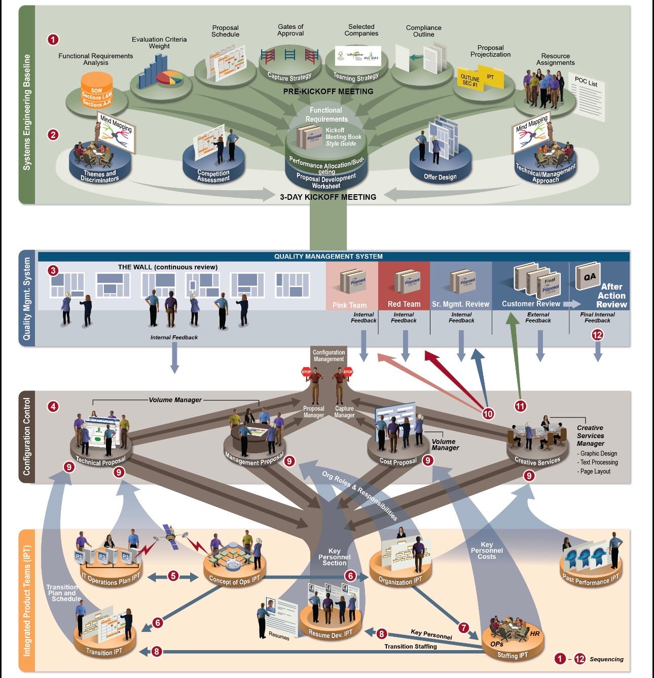 Newbies have never led a commercial proposal effort that requires a tightly choreographed series of commercial integrated product teams. There is nothing similar inside of the military. The complexity of the proposal development process is too great for a newly assigned ex-military leader to comprehend in 6 months of study. You can’t tell them that. You work issues with them one at a time and teach what you have learned.